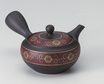 昭萠作黒泥大平丸形金彩赤粒急須帯網-食器の激安通販【食器JAPAN】