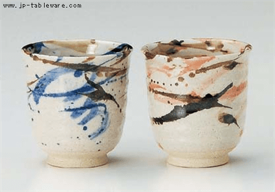 青乱彩湯呑-ピンク乱彩湯呑-食器の激安通販【食器JAPAN】